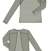 A fresh take on the everyday knit. Designed in a warm Forest Shadow White Stripe, this long sleeve top features refined seam detailing and contrast stripes that flatter and elongate. The classic crew neck and subtle side slits offer ease of wear—perfect for pairing with denim, trousers, or layered under your favorite jacket. An effortless essential with just enough edge.