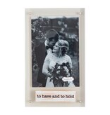 Magnetic acrylic 4" x 6" frame features wooden sentiment plank.